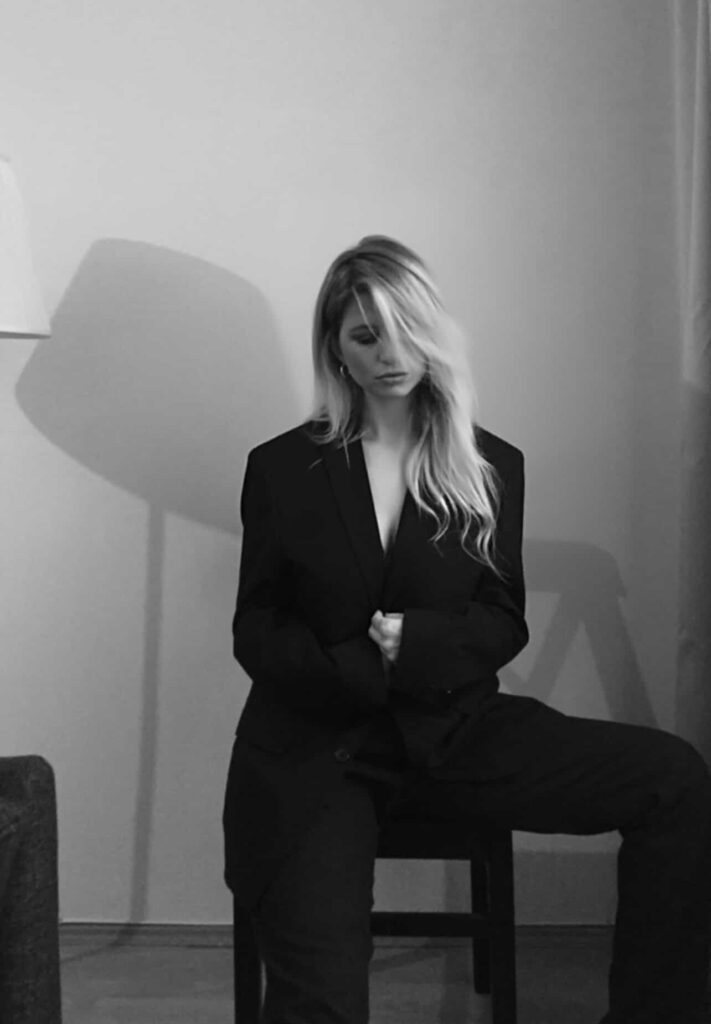 Minimalizmin en güçlü anlatımı bazen renklerden değil, duru bir duruştan gelir. Bu siyah-beyaz karede Pınar Yılmaz, sade bir stilin ne kadar etkileyici olabileceğini güçlü bir ifadeyle ortaya koyuyor.